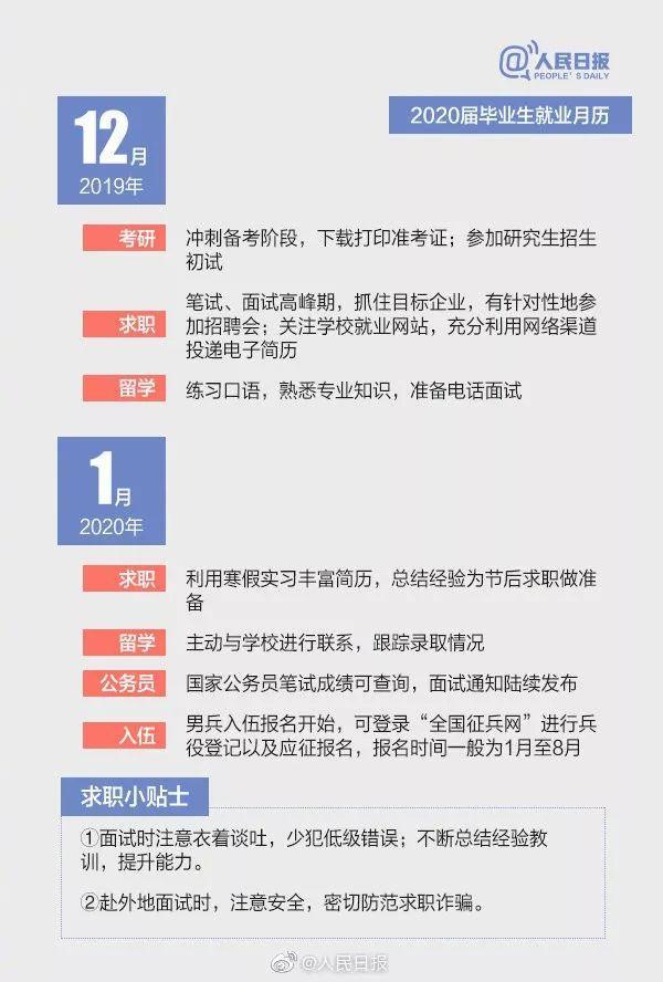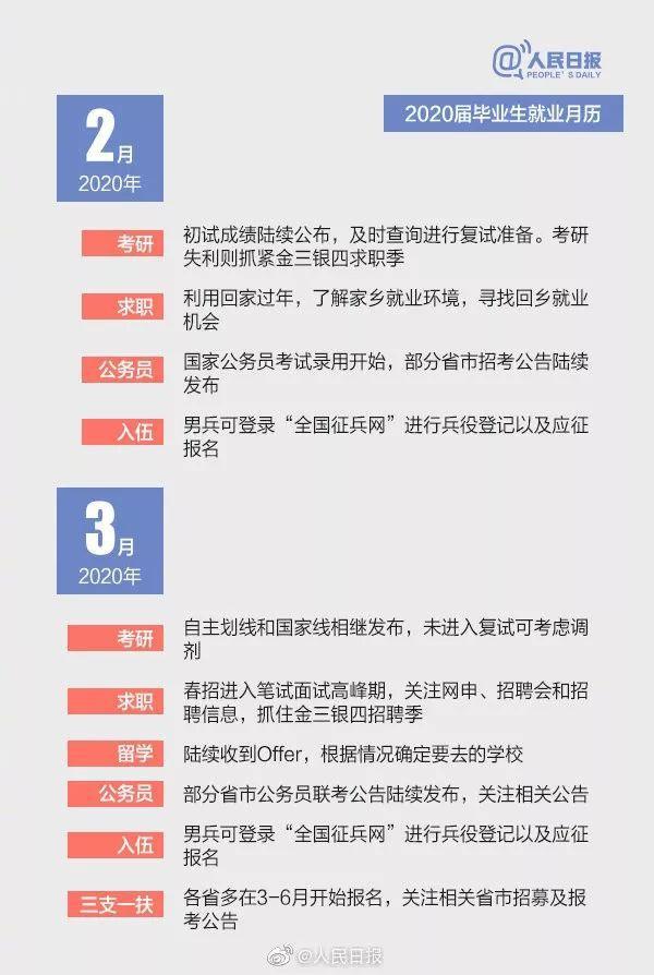 随着2019届毕业生陆续踏入工作岗位,2020届准毕业生也将开启新一轮的求职历程。暑假一过,新学期就开始了,考研、就业还是出国,你考虑好了吗?不打无准备之仗,2020届毕业生升学求职月历已帮你备好↓