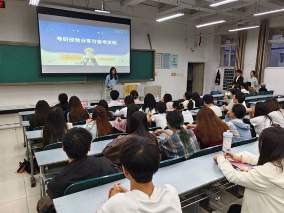 座谈会伊始,毛运意强调此次交流座谈会对同学们明晰发展路径、汲取经验智慧有重要意义,并寄望同学们用心倾听学长学姐的分享,从中得到启发,助力自身成长。分享环节,徐雯丽、李国艳、袁嘉烨等优秀毕业生分享经验。考研方面,徐雯丽提到考研要坚定信念,拒绝假努力。李国艳指出,需从多科目制定合理复习计划,并推荐相关信息渠道以及分享复试感受。考公方面,袁嘉烨介绍考公题型,分享科学备考计划。此外,另有学长学姐结合行业分享求职、职场适应等职业发展经验,为同学提供多元化的成长指引。