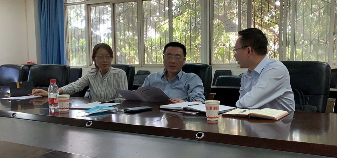 在宝贵的一小时时间里,蒋教授认真审阅了李杰老师的《自贸试验区在构建新发展格局中的独特作用与实现路径研究》和毛运意老师的《“30*60目标”驱动下制造业碳硫闭合机理与路径研究》项目申报书,从题目用词、选题意义、研究目的、申报书主体部分的构架等方面,提出了很多宝贵的意见和修改建议。蒋教授肯定了两位老师的研究思路,鼓励毛运意老师把选题与资源型城市转型有机结合,凸显研究特色。交流过程中,蒋教授提出的一些独到而新颖的见解,拓宽了大家的思路,也进一步坚定了申报国家级项目的信心。